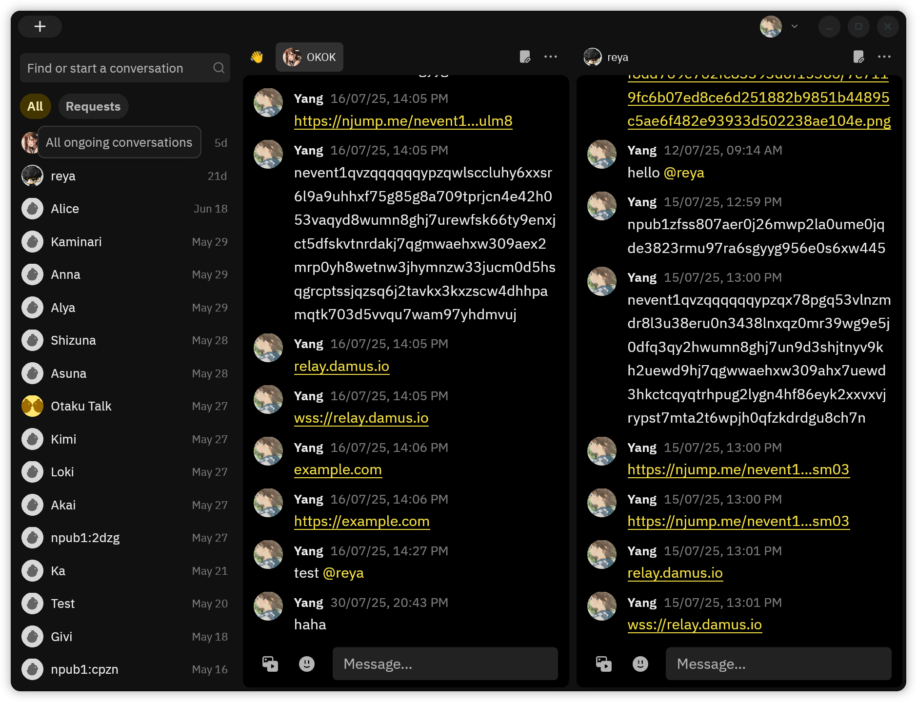 "content":"Yo. It’s been a while since I’ve shared any updates about Coop. I’ve been silently working to improve it over the last few months. Today, I’ve released version 0.2.0, it’s stable and robust. You can download and try it here: https://reya.su/coop \n\nabout coop: \ncoop is a NIP-17-focused client for desktop, simple as that. \n\np.s.: \nThanks to nostr:npub180cvv07tjdrrgpa0j7j7tmnyl2yr6yr7l8j4s3evf6u64th6gkwsyjh6w6 for testing and giving me valuable feedback over the last few months. \n\nhttps://files.catbox.moe/l8qsj0.png\nhttps://files.catbox.moe/dqdo3n.png\nhttps://files.catbox.moe/p4395t.png\nhttps://files.catbox.moe/2qysev.png\nhttps://files.catbox.moe/kf0sha.png\nhttps://files.catbox.moe/dcu21x.png\nhttps://files.catbox.moe/9vinse.png\nhttps://files.catbox.moe/yplsso.png\nhttps://files.catbox.moe/dbo2nl.png\nhttps://files.catbox.moe/fq8wr4.png\nhttps://files.catbox.moe/jr9a05.png\nhttps://files.catbox.moe/diec7y.png\nhttps://files.catbox.moe/ckcgi2.png\nhttps://files.catbox.moe/14xd9t.png",